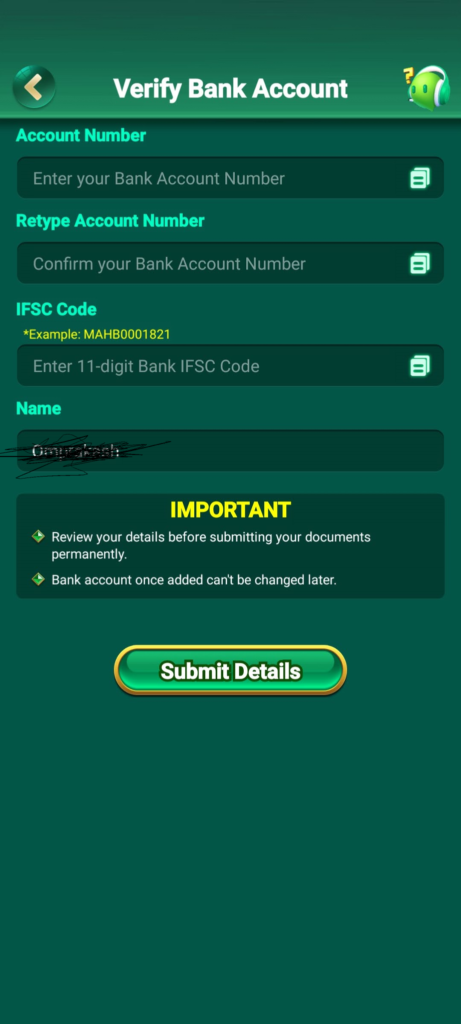 Hello brothers, if you have won money by playing games in APP RANISLOT DOWNLOAD this application and you want to withdraw that money to your bank account, then for that you will only have to verify your bank account in APP RANISLOT DOWNLOAD this application, after that you can withdraw money from this application, friends, for that you can verify any bank account in this application and can withdraw your money safely to your bank account.