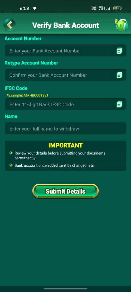 My friends, if you want to withdraw money from this application, then first of all open the application and click on the WITHDRAWAL option and there enter your bank account information and fill in the amount you want to withdraw from this application, after that confirm it, then friends, your account will be added, if you face any problem due to any reason, then you can talk to the customer code.